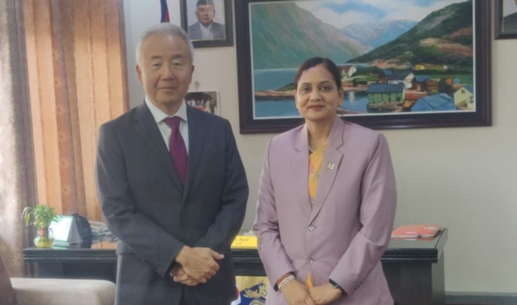 काठमाडौँ, चैत ३० गते । स्वास्थ्य, जनसङ्ख्या तथा खानेपानीमन्त्री निशा मेहतासँग नेपालका लागि जापानका राजदूत मायदा तोरूले शिष्टाचार भेटवार्ता गर्नुभएको छ ।
