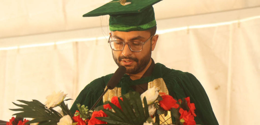 विश्वविद्यालयजस्ता शैक्षिक संस्थामा राजनीतिक हस्तक्षेप हुनु नहुने बताउँदै उहाँले पदाधिकारीहरू समेत राजनीतिक दलदलबाट मुक्त हुनुपर्ने धारणा राख्नुभयो । मन्त्री पोखरेलले शिक्षा केवल डिग्रीमा सीमित नभई व्यावहारिक, पेसामुखी र सीपसँग जोडिएको हुनुपर्ने बताउनुभयो । ज्ञानको अभाव नरहेको उल्लेख गर्दै उहाँले प्राप्त ज्ञानलाई सीप र पेसासँग कसरी जोड्ने भन्ने विषय नै अहिलेको मुख्य चुनौती रहेको बताउनुभयो । संस्थागत सुशासन सरकारको प्राथमिकतामा रहेको उल्लेख गर्दै उहाँले दीक्षित विद्यार्थीलाई आफ्नो ज्ञान र सीप देशको समृद्धिमा प्रयोग गर्न आग्रह गर्नुभयो ।